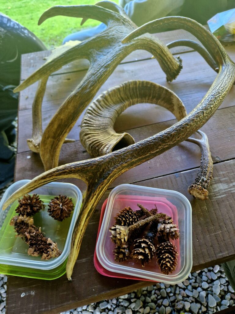 - dotknąć piór sowy i poroża jelenia,